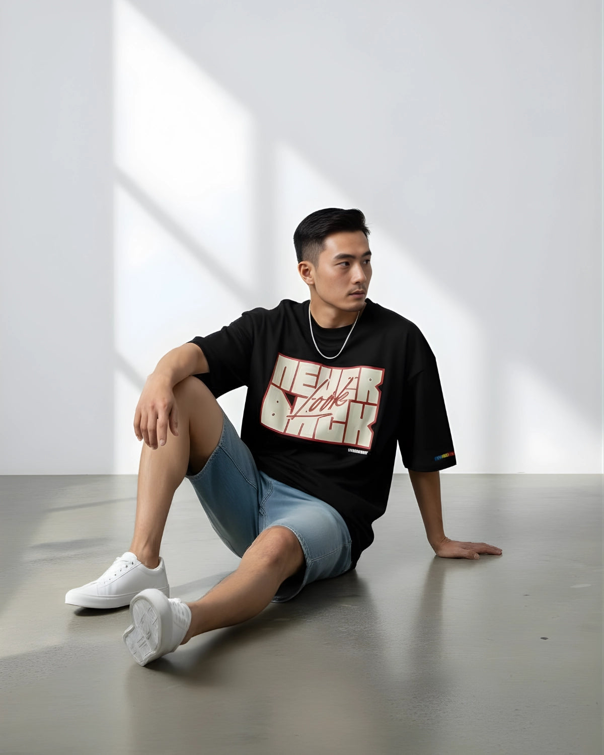The Oversized Black Tee from TRYMEEOUT blends minimal design with raw street energy. Featuring a subtle NEVER LOOK BACK on the front, this tee is designed to stand out without trying too hard.